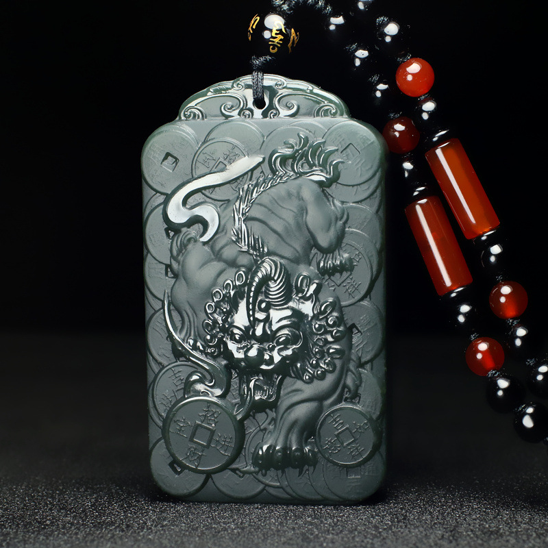 烏金黒曜石十二生肖ペンダント男性女性ネックレスは龍本命年に属しています。