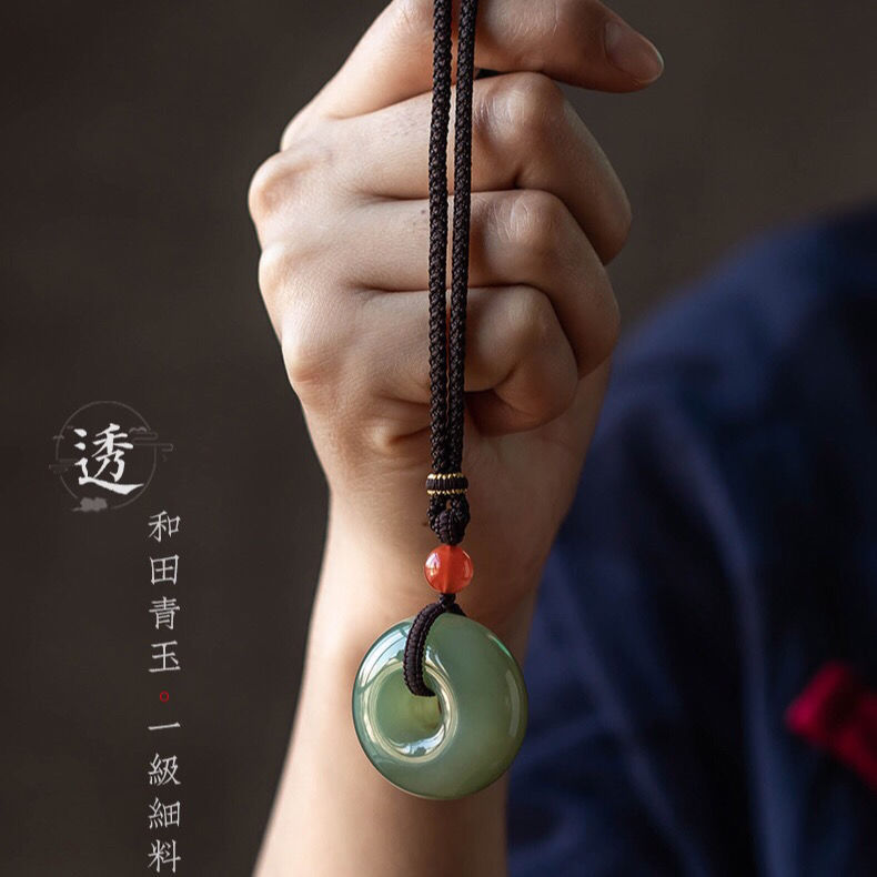 天然和田玉ペンダント下げ紐青玉煙紫平安ボタンネックレス女性輸送本命年カップルペンダント