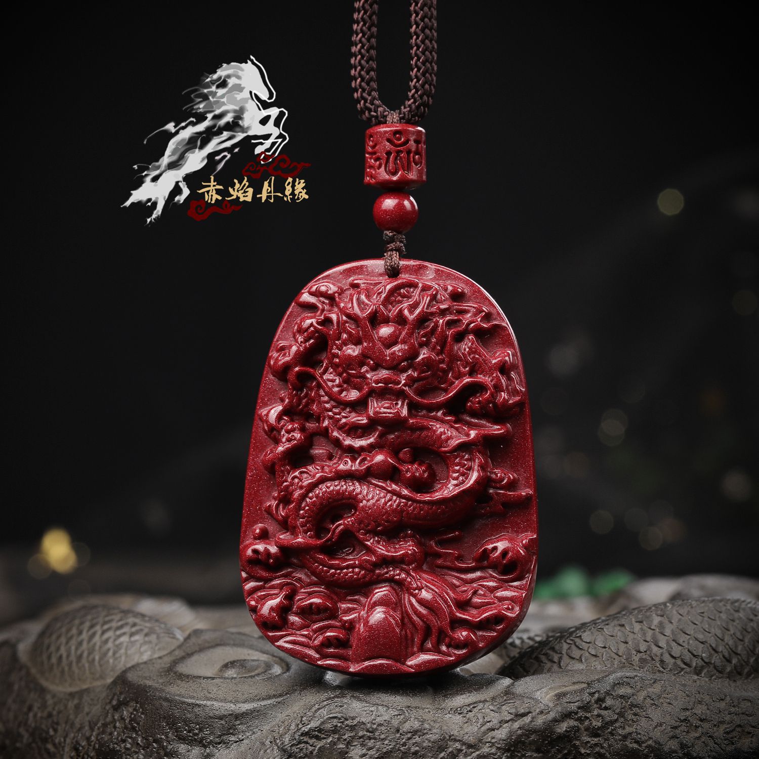 朱砂龍牌高含有量紫金砂龍騰四海本命年符平安男女ペンダント