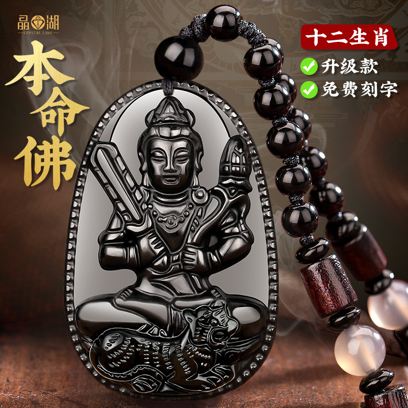 黒曜石本命仏ペンダント虚空蔵大勢至文殊普賢菩薩ネックレス女年龍兎牛虎蛇男