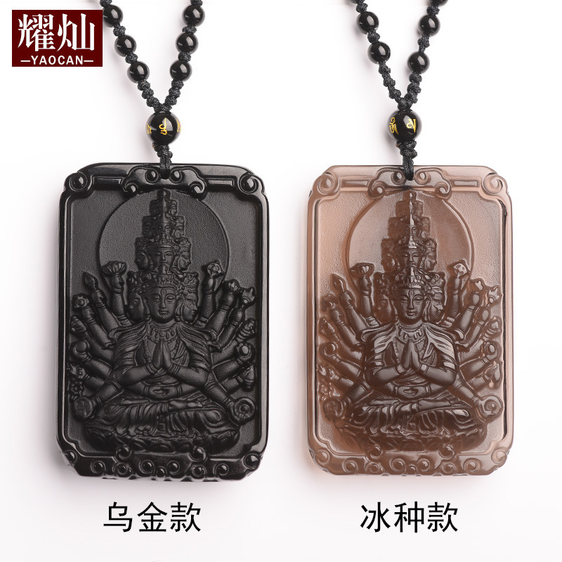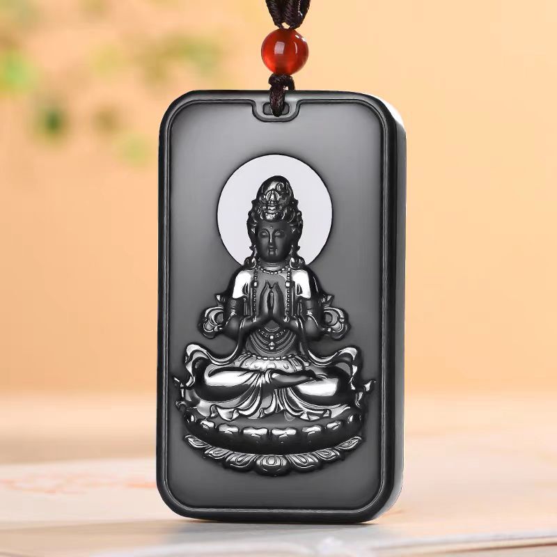 耀燦と輝く黒曜石本命仏ペンダント千手観音普賢虚空蔵文殊菩薩生肖守護神ペンダント