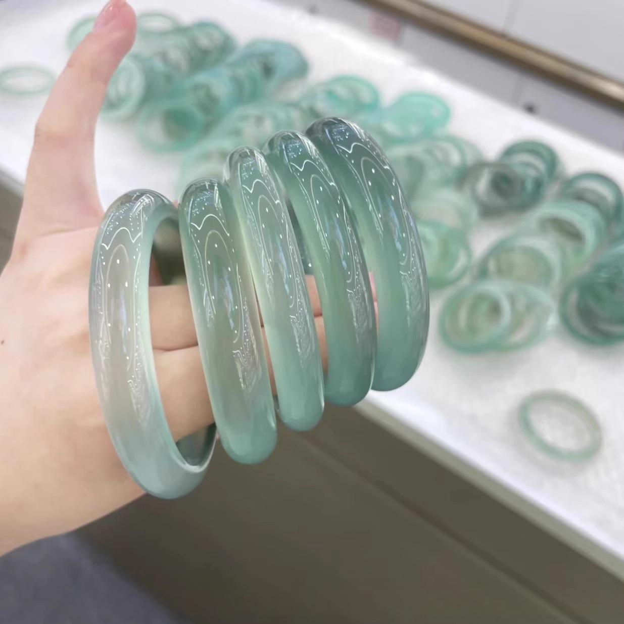 天然玉天山翠ブレスレット氷種翡翠色漂花玉ブレスレット