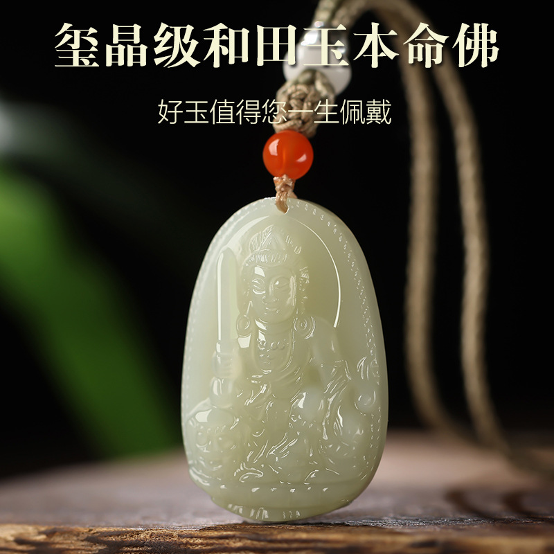 和田玉本命仏十二生肖守護神千手観音普賢文殊虚空蔵菩薩年虎ペンダント