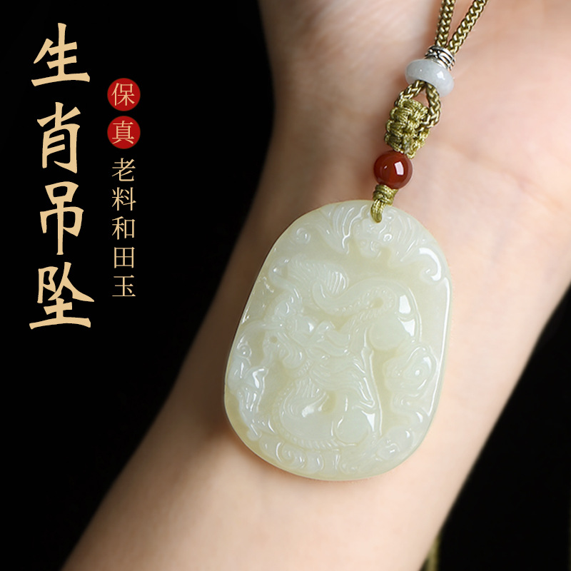 蛇年本命年天然和田玉十二生肖ペンダント男ネックレス女玉玉玉佩龍馬犬