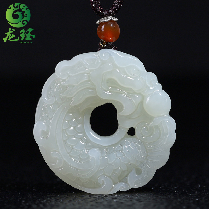 天然和田玉円形龍牌ペンダント男女玉両面彫刻生肖龍玉ペンダント属龍ペンダントネックレス