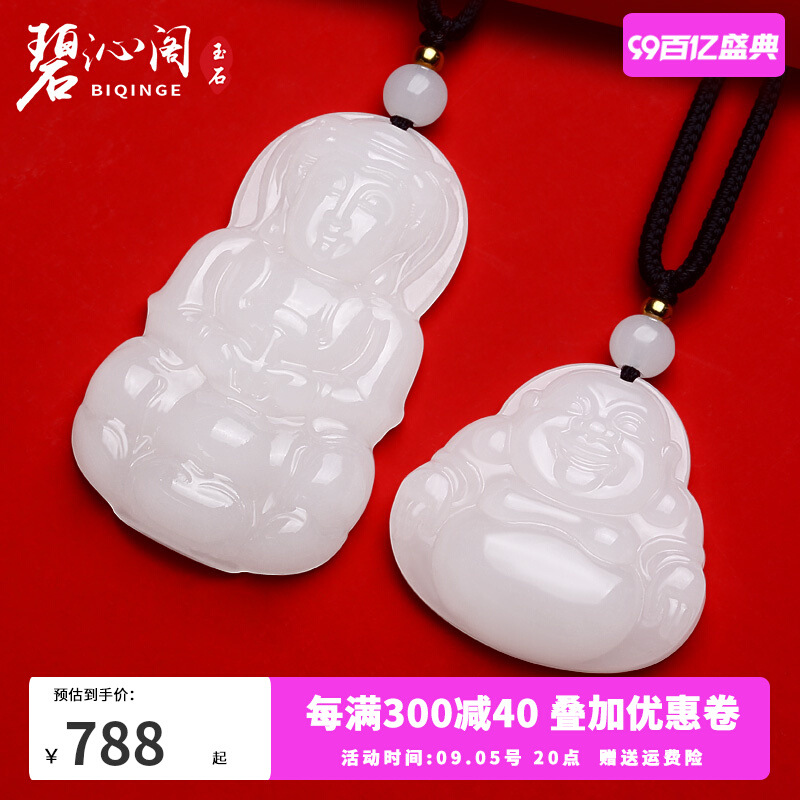 碧沁閣新疆和田玉観音玉男羊脂玉仏ペンダント女弥勒仏玉玉ネックレス玉佩