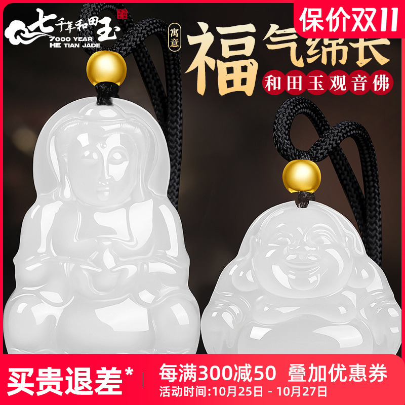 7000年和田玉玉観音ペンダント男羊脂白仏公玉ペンダント女弥勒仏玉観音玉ネックレス