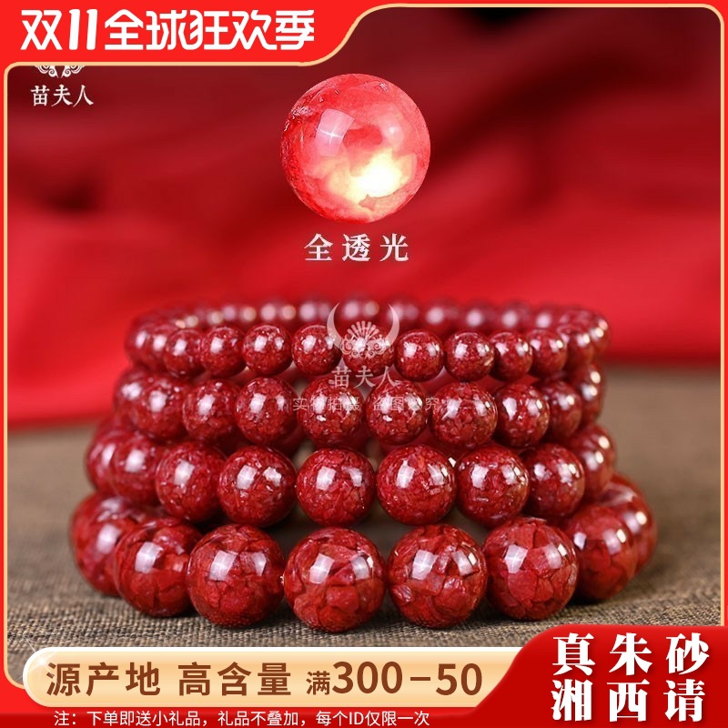 湘西朱砂結晶ブレスレット女性手串男原鉱石透光ソフトルビー張家界トースト墨城戎