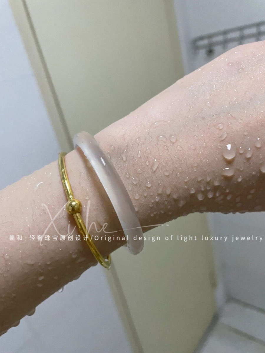瑪瑙のブレスレットの氷透玉の腕輪の女性の若い金の細い条の少女の玉の腕輪の玉髄の腕輪の丸い条の氷種の玉の腕輪
