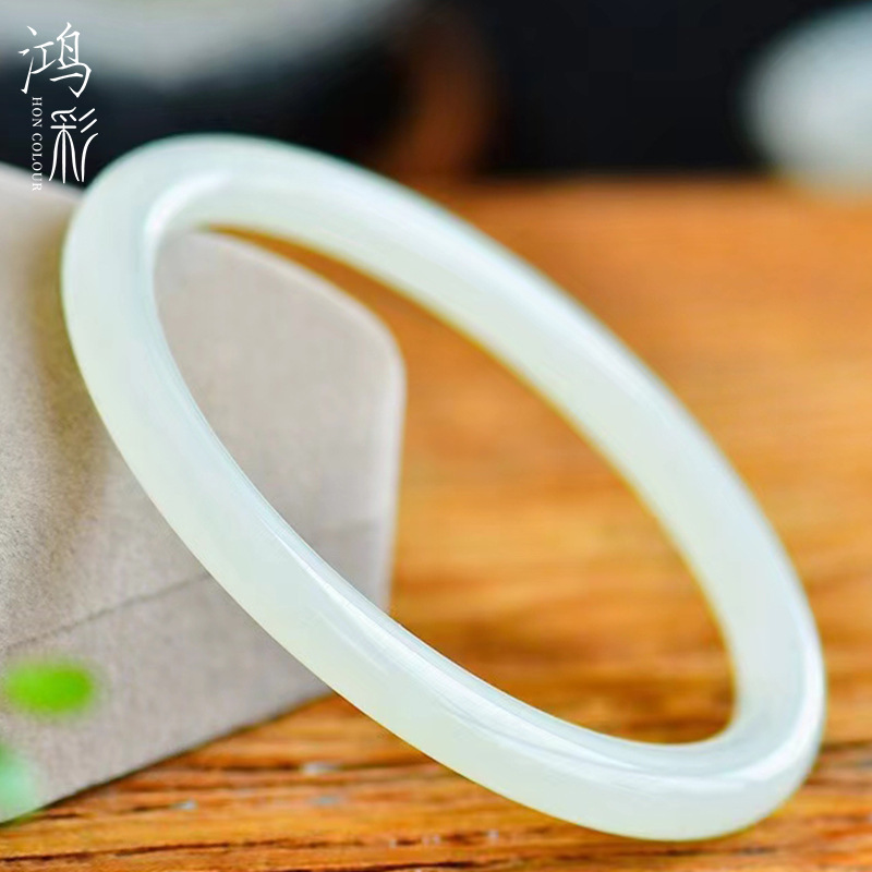 和田玉羊脂白玉ブレスレット玉腕輪の女性少女の細いブレスレットの天然玉がブレスレットになります。