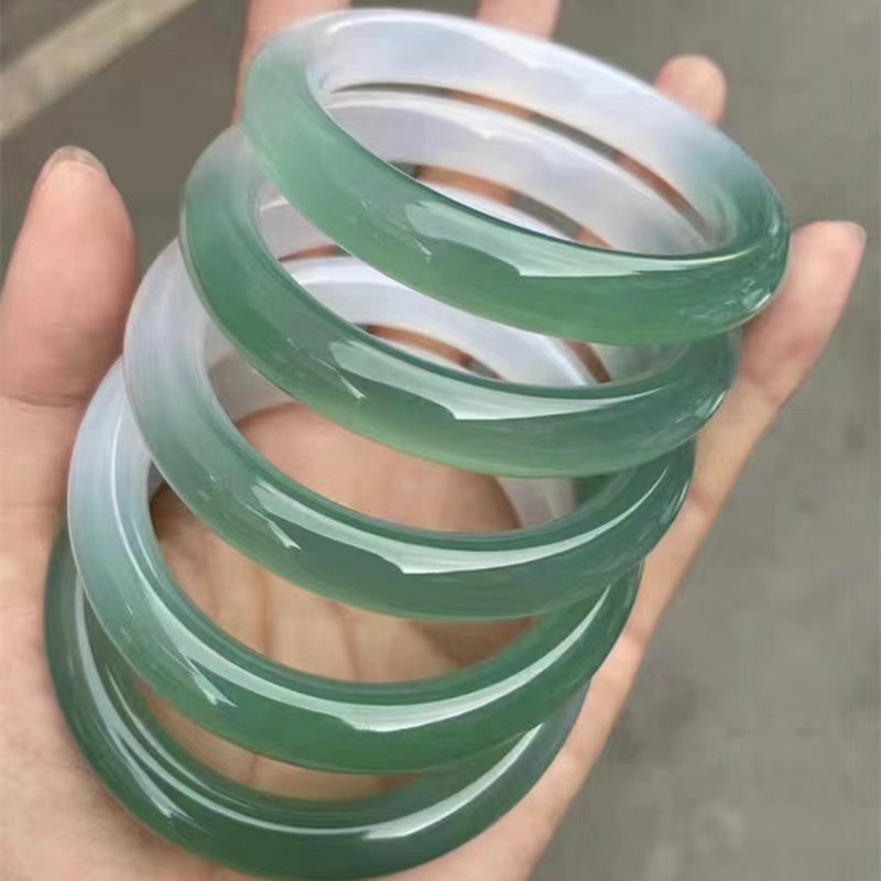 証明書付き半山半水天然油青色瑪瑙ブレスレット氷種玉髄美人ブレスレット女性玉ブレスレット