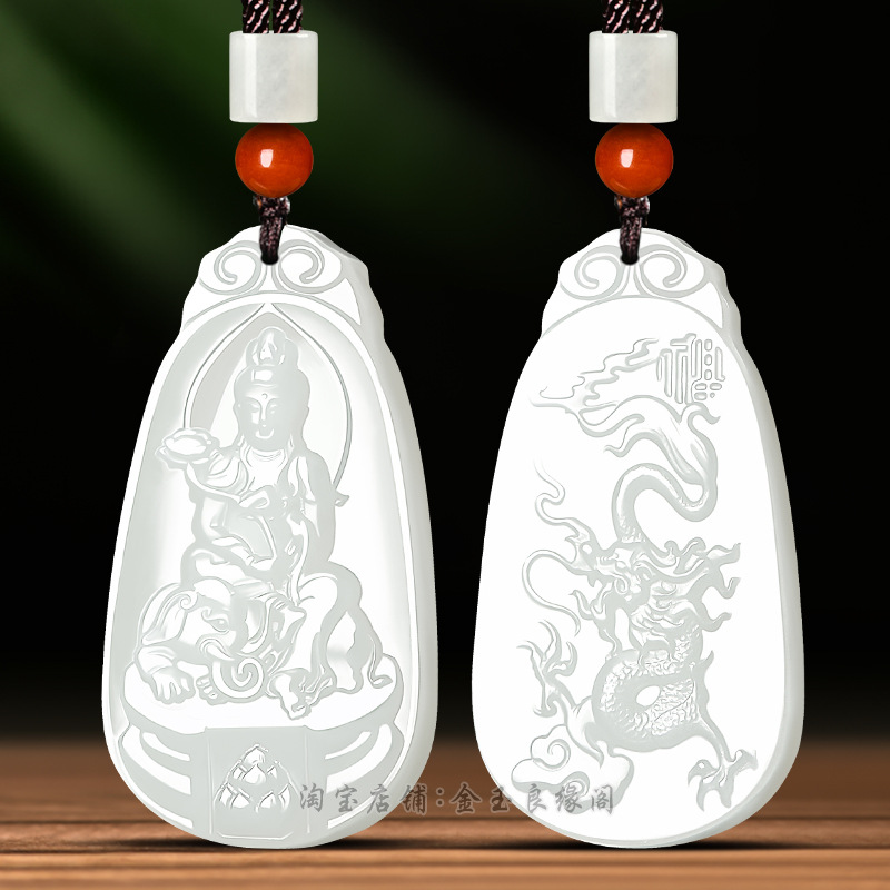 和田玉普賢菩薩本命仏ペンダント男女羊脂白玉十二生肖龍蛇玉佩観音ネックレス