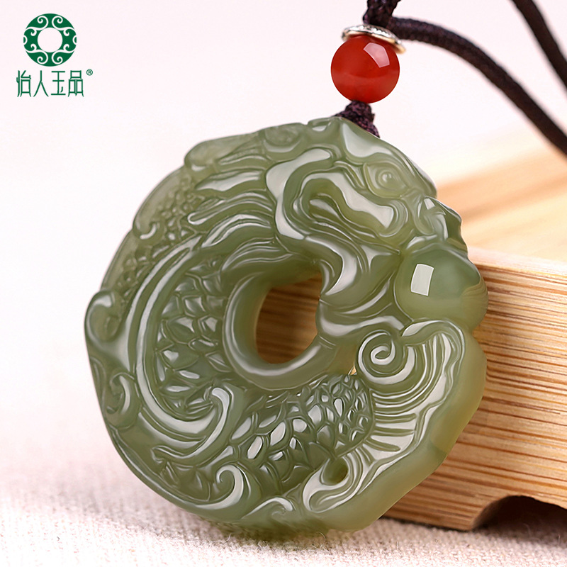 天然新疆と田玉ペンダント魚化龍のネックレス