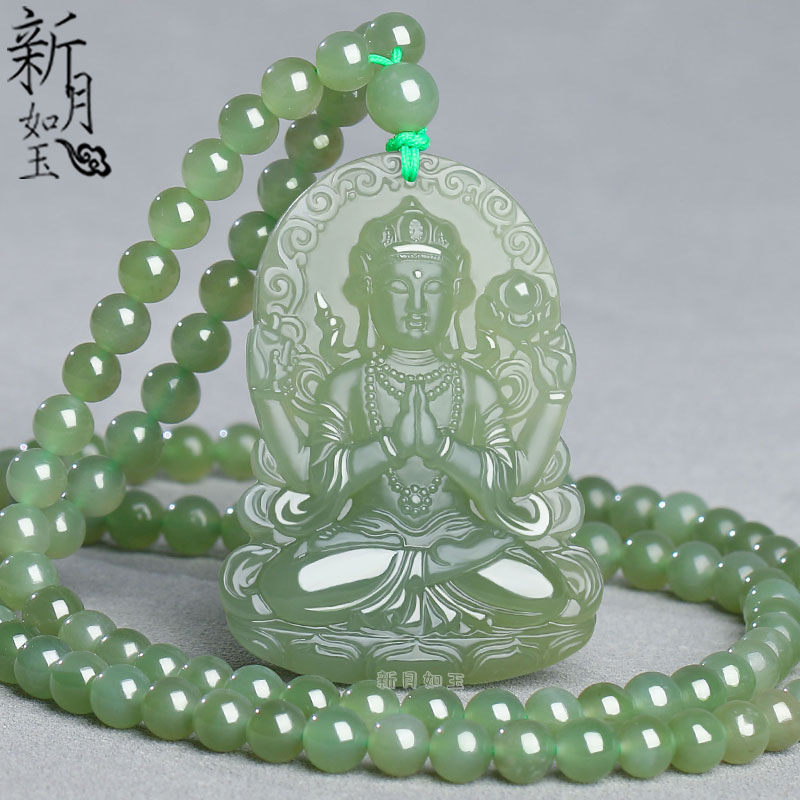 和田玉観音ペンダント男性玉牌晴水種四腕観音菩薩ペンダント玉佩仏珠ネックレス