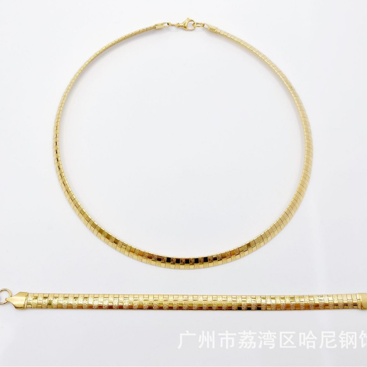 欧米のファッションジュエリー8mm首輪欧米伽ステンレス首輪蛇骨鎖首輪ブレスレットセット女性