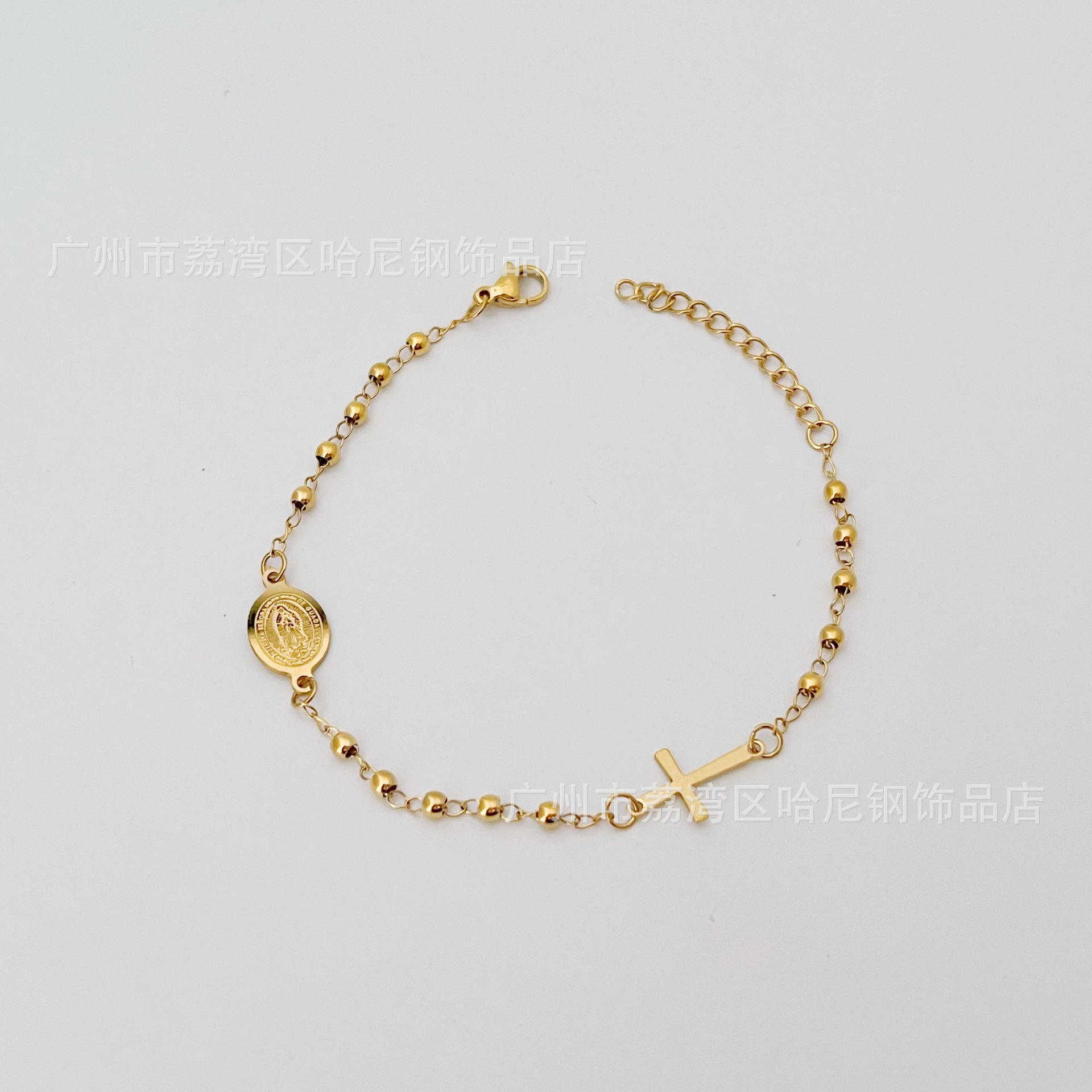 欧米の西洋の宗教のトーテムの十字のステンレスのブレスレットの神父の金のブレスレットの聖母の金の玉のブレスレット