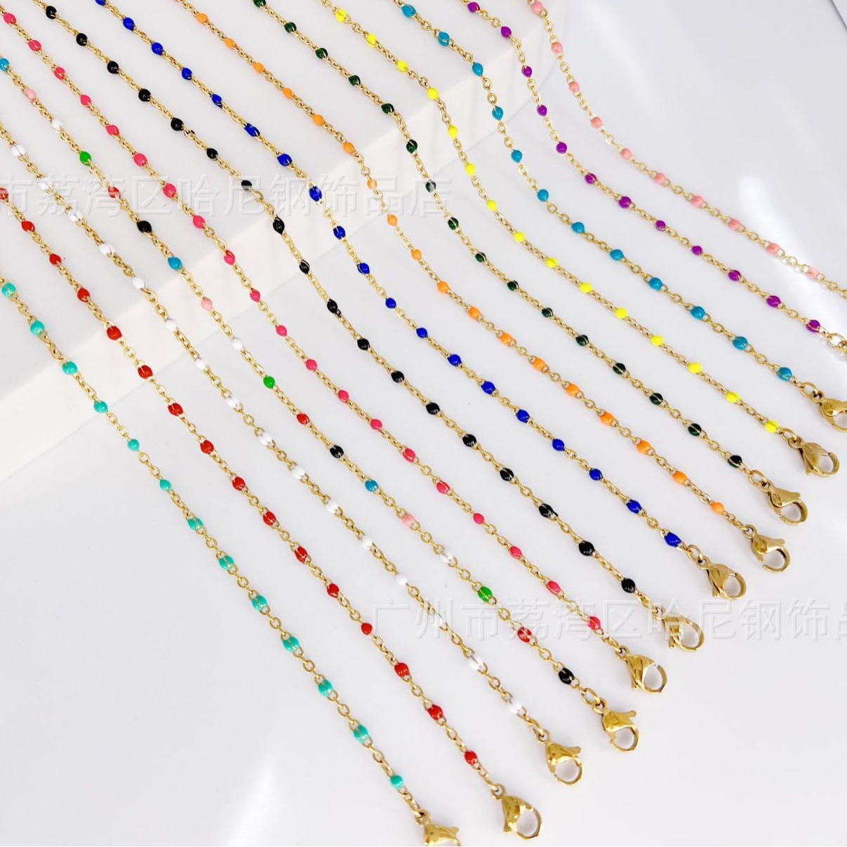 欧米のレトロな小衆の油の色の豆のネックレスのボヘミアン風のステンレスのo字のチェーンの油のネックレスの女性