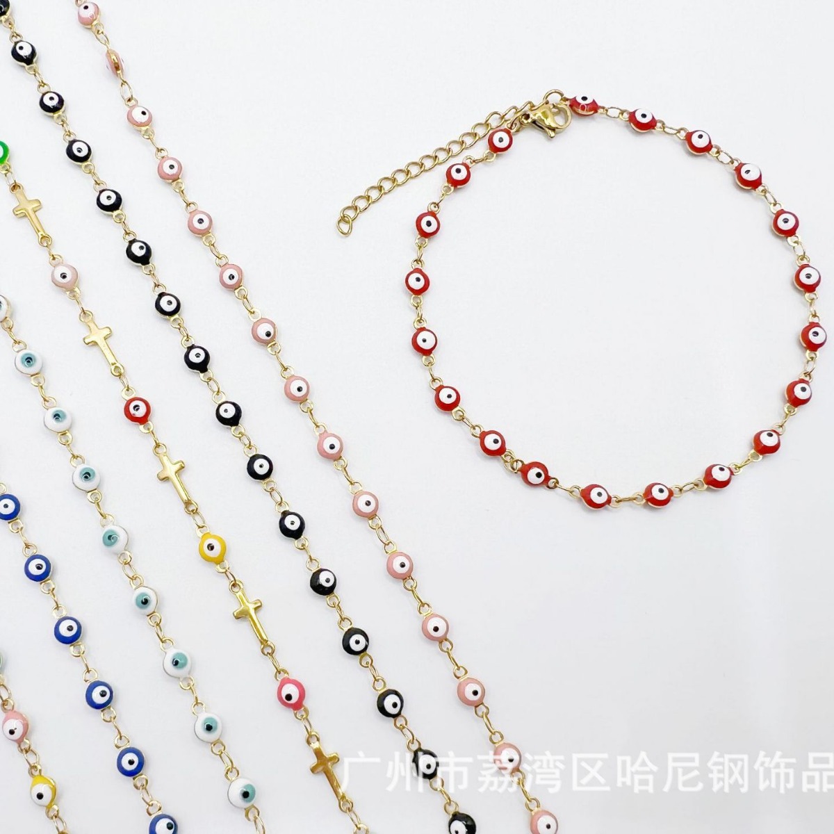 国境を越えた電気商がよく売れているステンレスの足の鎖の女性トルコの邪悪な目のカラーの油の足の鎖の現物の卸売り