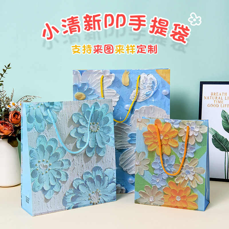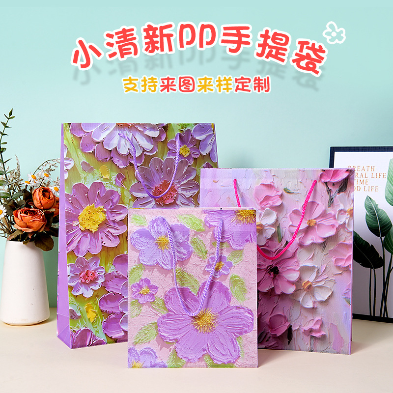 油絵スタイル pp プラスチックハンドバッグカスタムフラワーイメージアートギフトバッグ誕生日プレミアムギフト包装袋