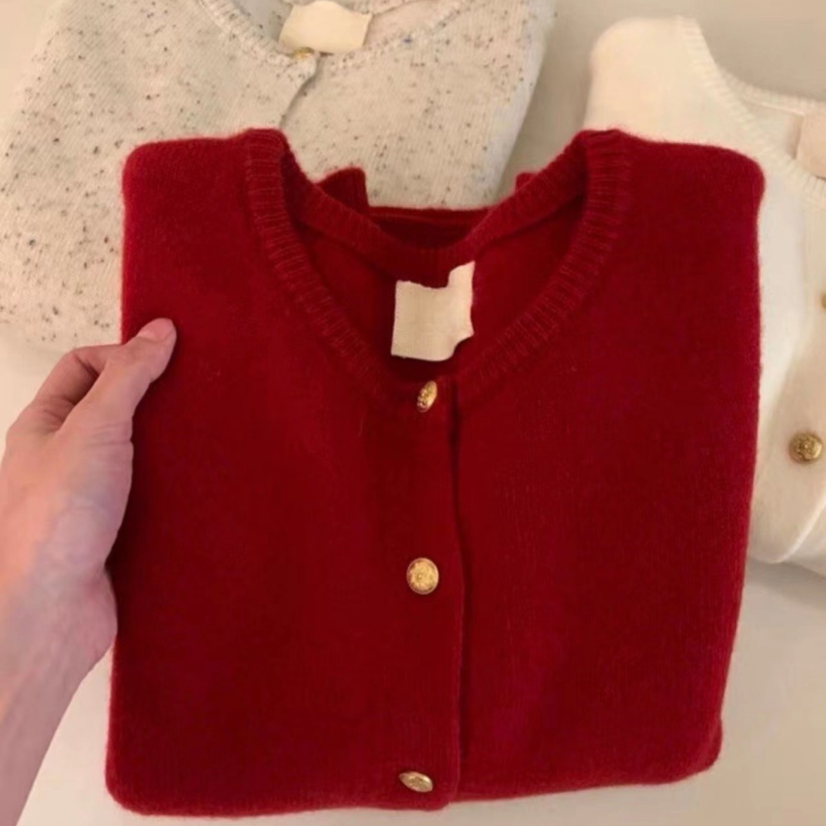 クリスマスの全ウールの厚い金のニットのカーディガンの女性の24秋冬の新型のセーターのオーバーはゆったりしていてやせています。