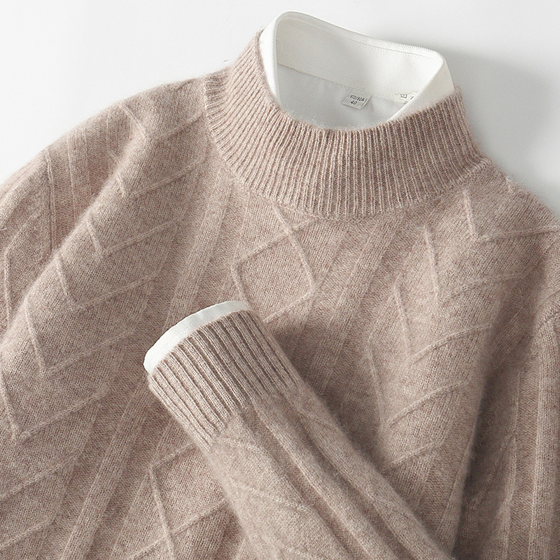 2025秋冬メンズハーフタートルネックカシミヤセータージャカードプルオーバー厚手ニットセーター無地トレンド