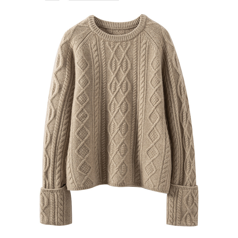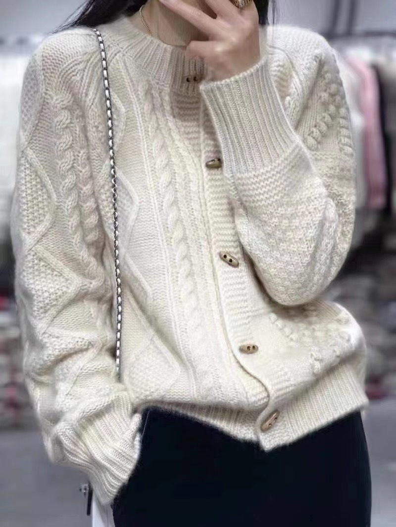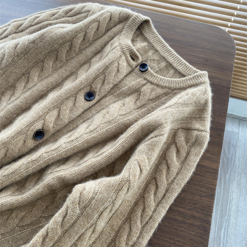 厚手のウールセーター レディース 丸首 厚手 万能セーター 韓国風 ツイスト編み ゆったり カシミヤニットトップス ジャケット カーディガン