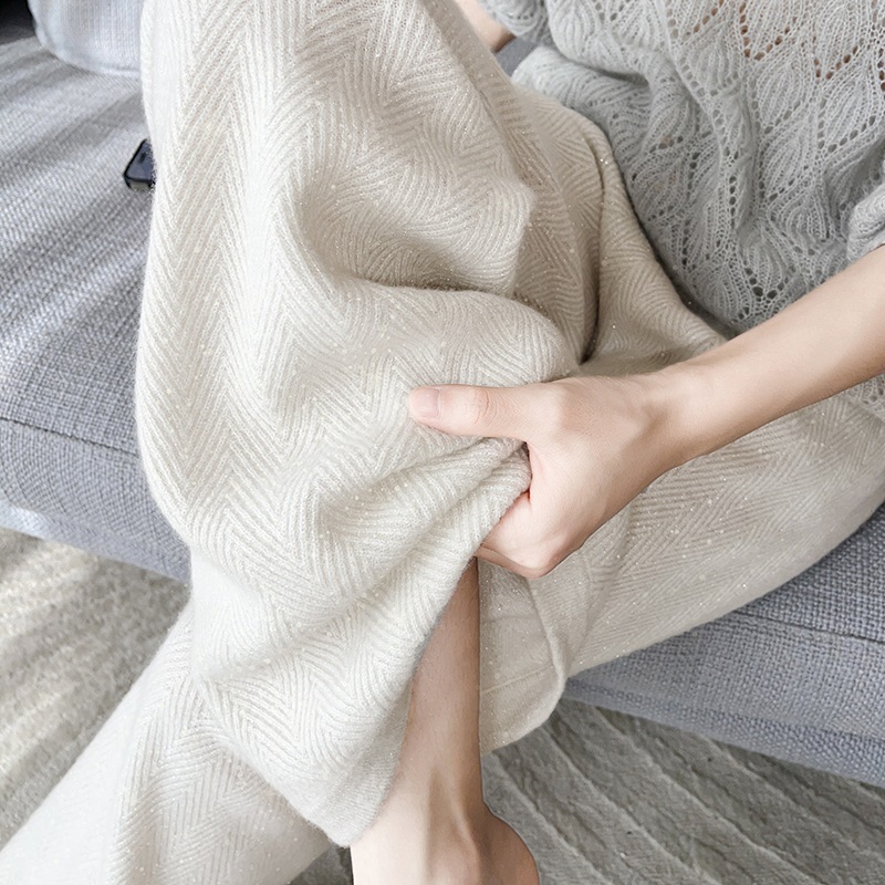 金銀の純ウールのニットのワイドレギンスの女性の外は高腰のポケットのカシミヤを着てまっすぐなズボンを引きずっています。