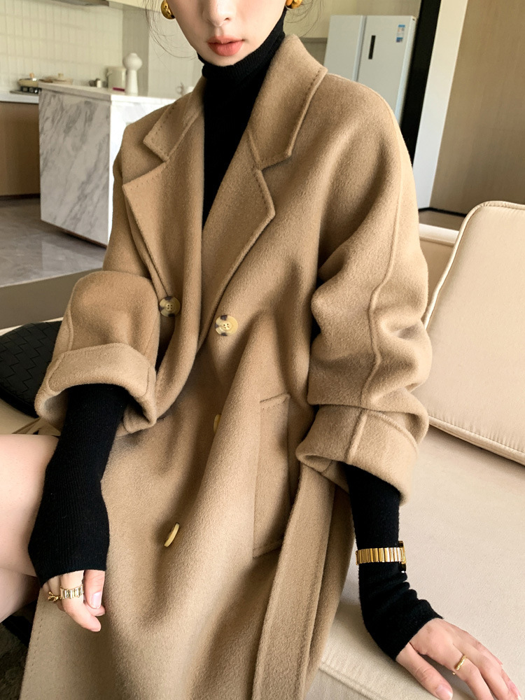 小さい背の両面はカシミヤのコートの女性がゆったりしています。