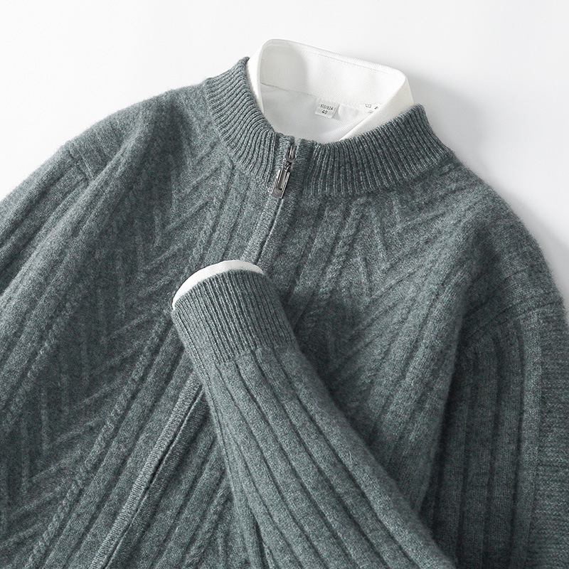 秋冬厚手100セーターニットカーディガンジャケット男性用ジッパーセーター外付け純色ニットセーター