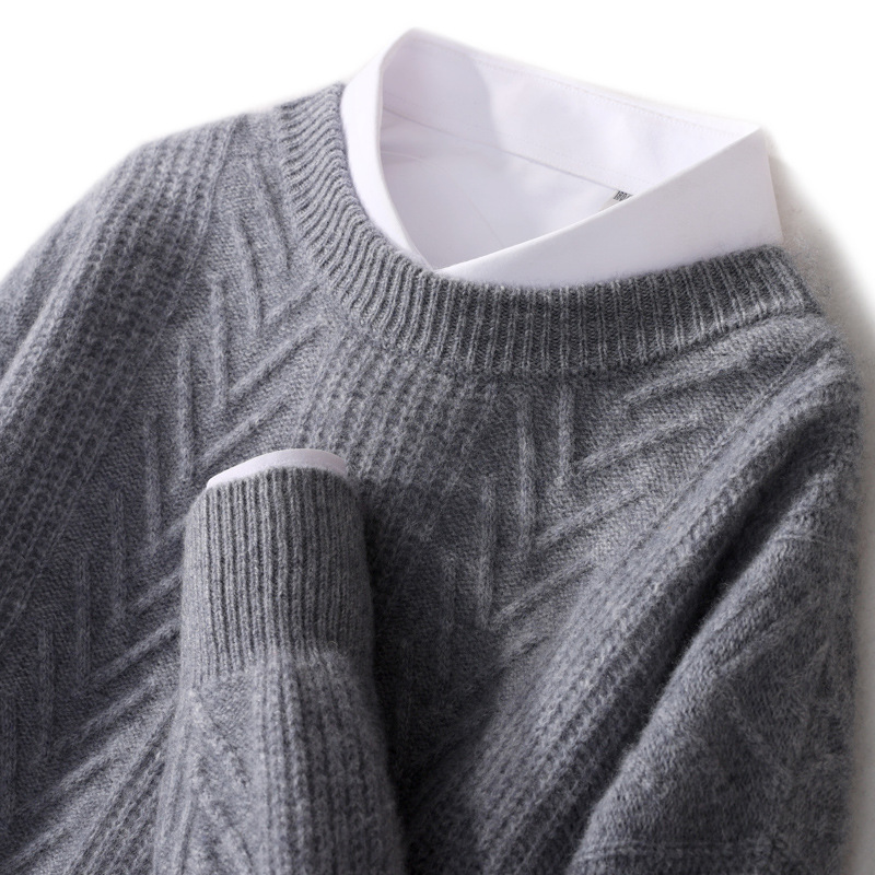 男性の純ウール秋冬の新型男性の丸首は厚いセーターを厚くします。