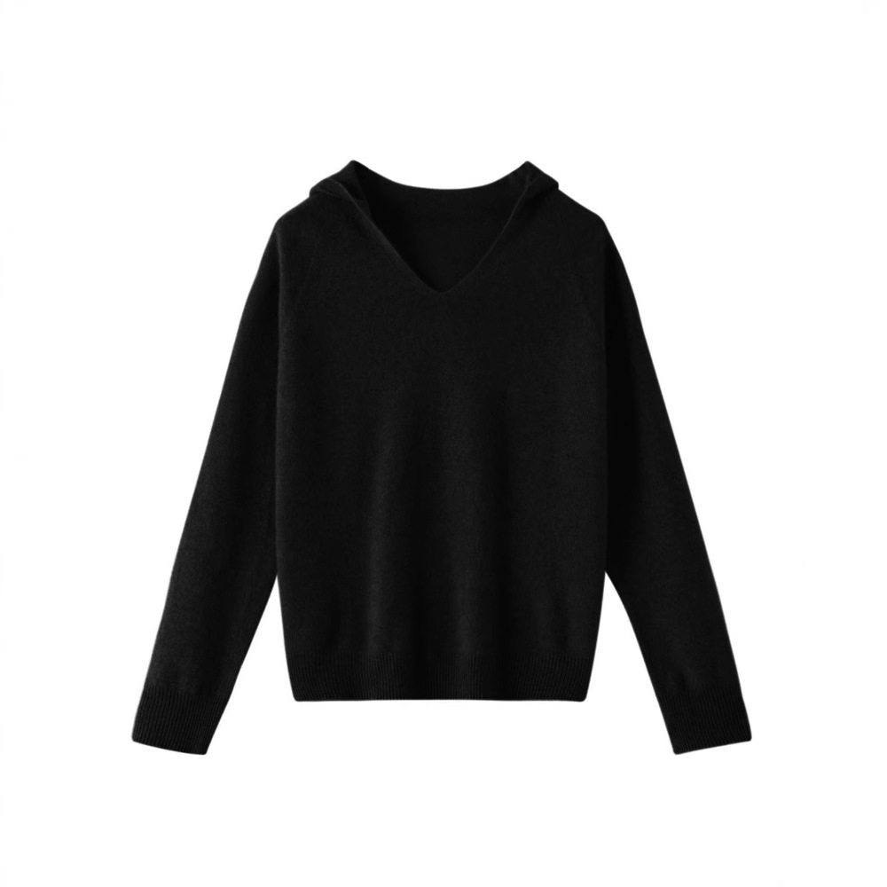 女性用フード付きカシミヤセーター、Vネック、軽量高級感、圧迫感のないパーカー、純毛、肌に優しく柔らかく、多用途なトップス、トレンド