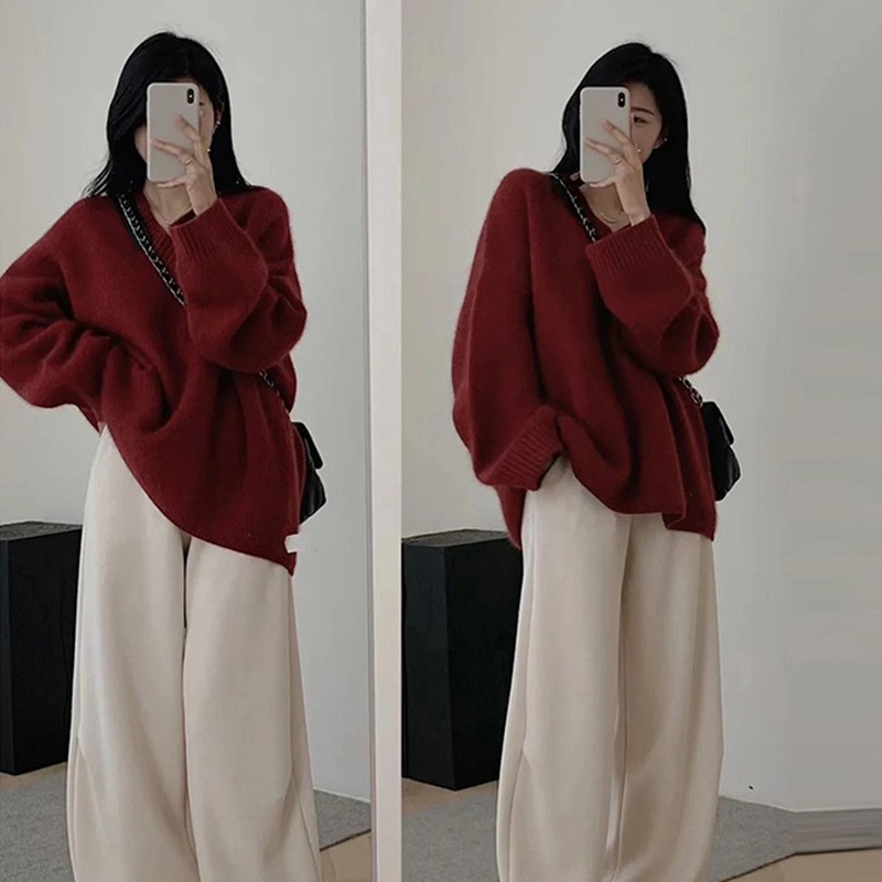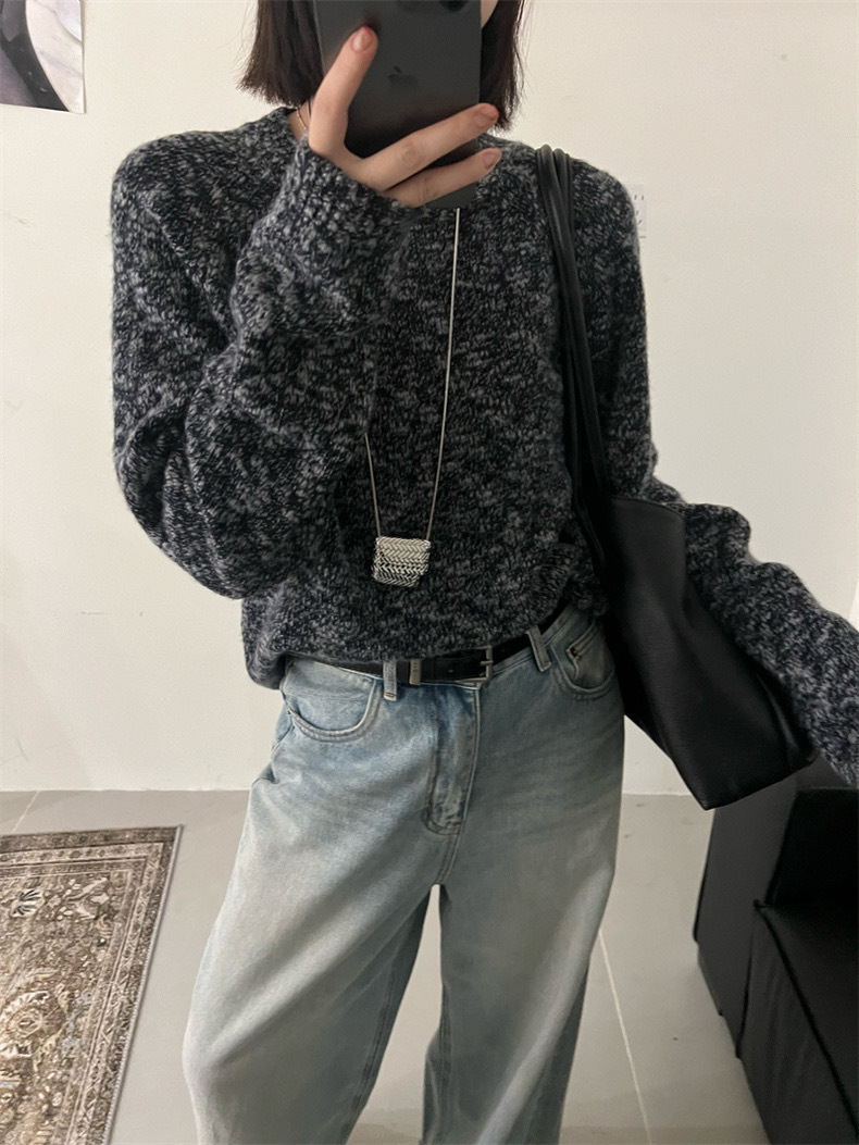 2025年秋冬万能レディースラウンドネックカシミヤゆったり欧風ソフトで厚手のウールベースセーター