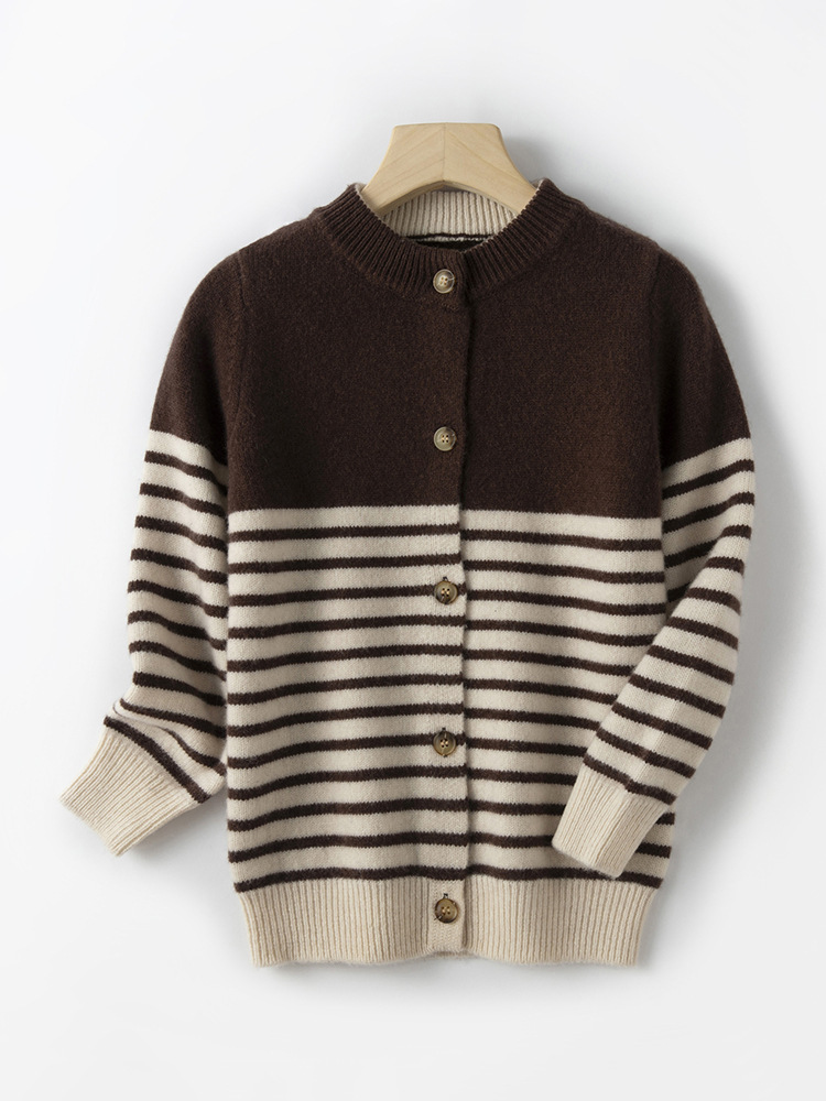 25秋冬新作厚手子供用ウールカーディガンストライプ柄子供服セーター秋冬男女兼用カシミヤニットジャケット