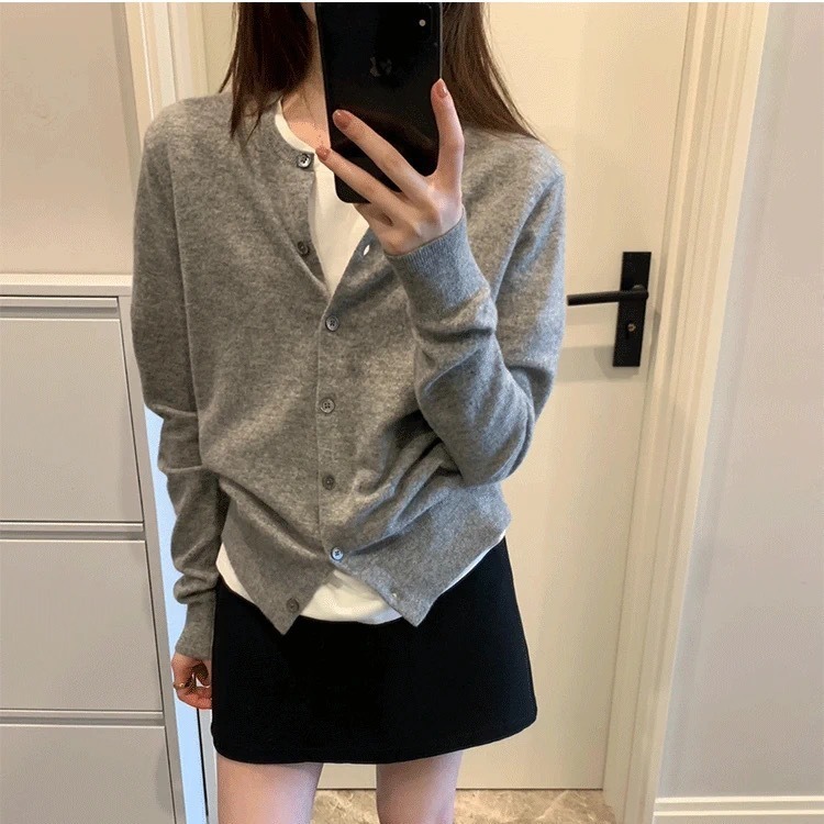 レディース100ウールシンプル丸首ショートカーディガン秋冬新作クラシック純色減齢百合コートブーム