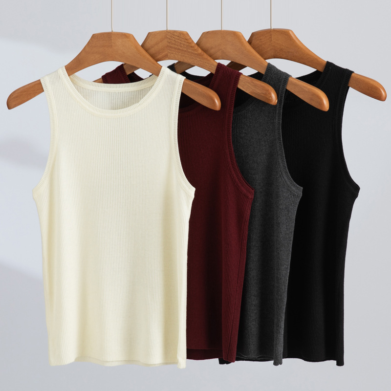 ウール精紡四平25春と秋の新型女性修身U襟の短い純色の袖なしニットベスト