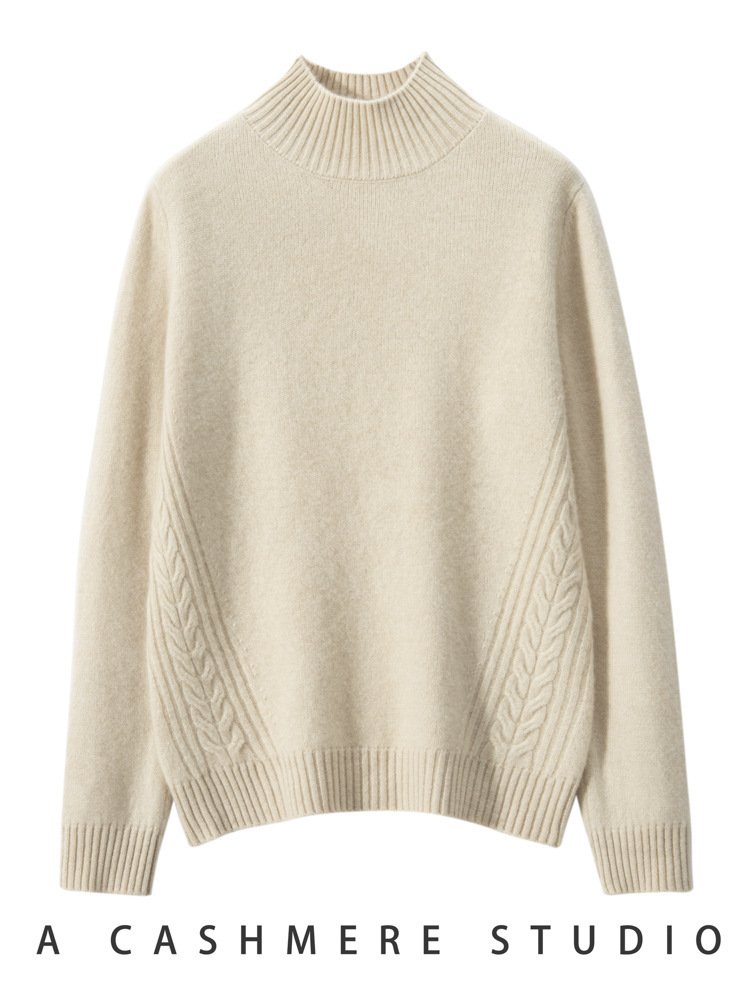半高襟の両側の麻花のデザインの頭の純色の山のカシミヤのシャツの女性のニットのセーターの長袖の頭の上着の厚い金