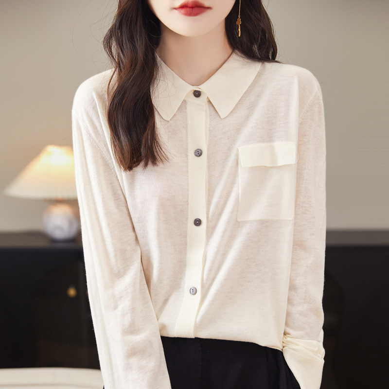 日常通勤風POLO襟女性精紡カーディガン春夏新作軽薄通気日焼け止め長袖ポケット付き