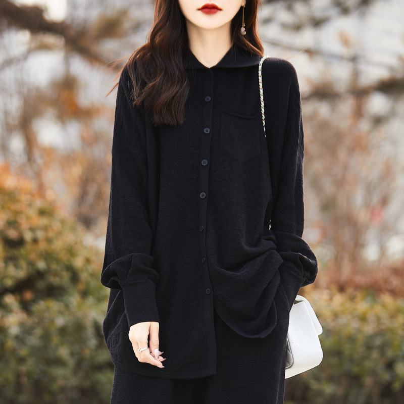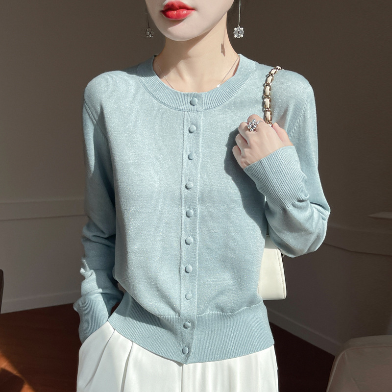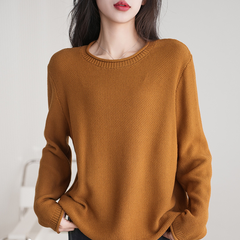 精織ウール2025春夏女装丸首ゆるい純色薄い長袖セーターニットシャツ
