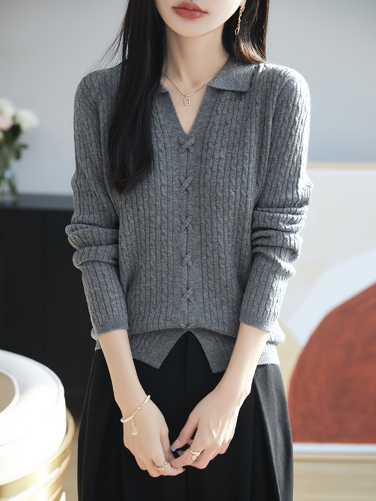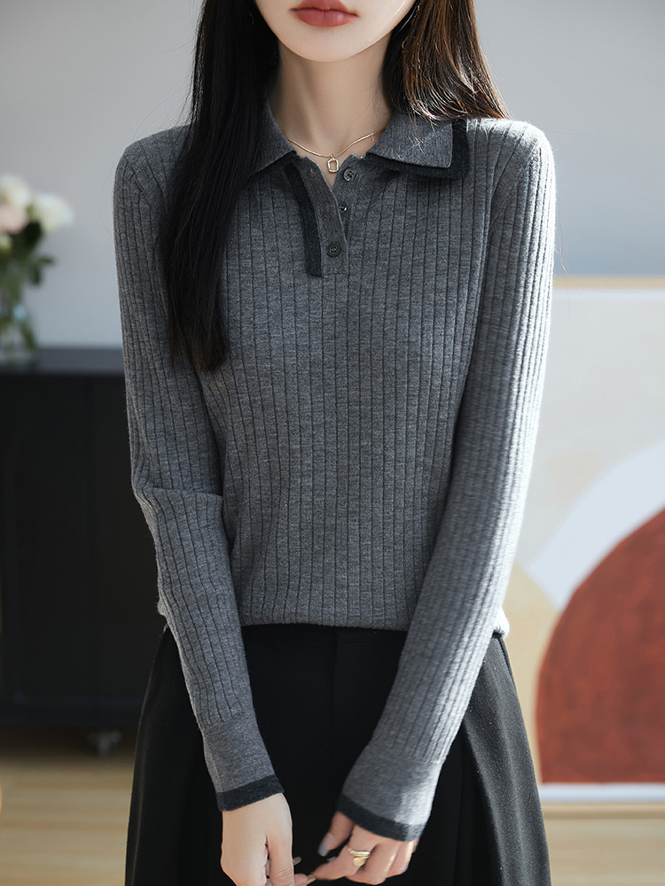 早春の新型POLO襟の純ウールのセーターの女性は痩せたセーター感があります。