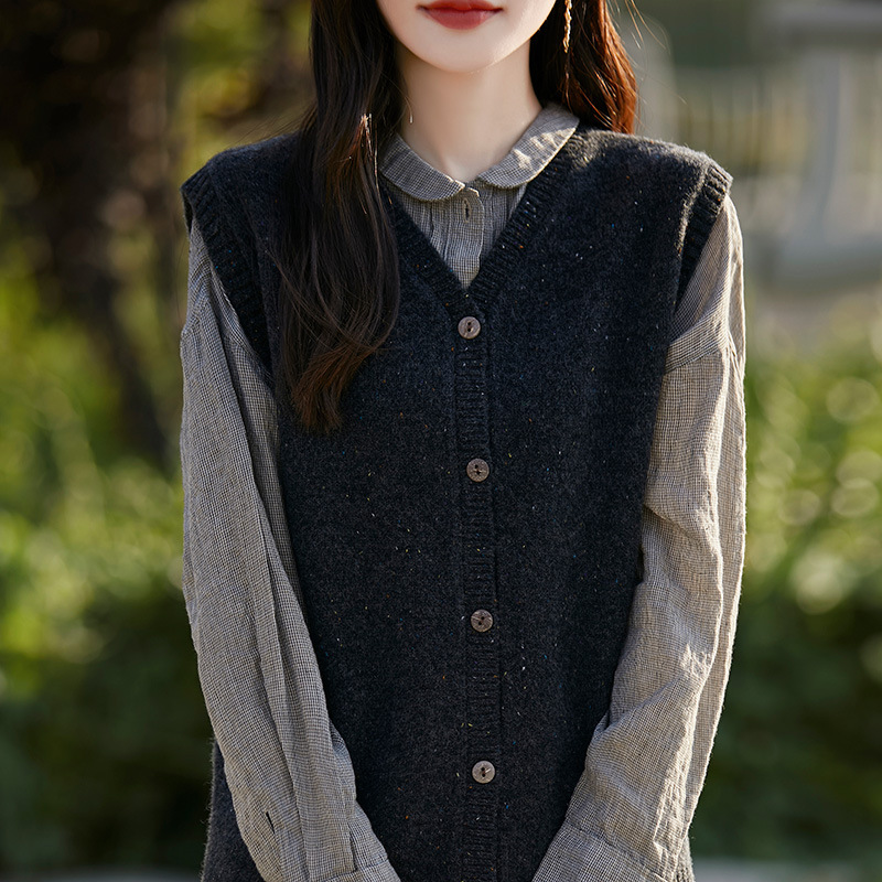 2024年秋冬新作純ウールvネックニット馬甲カーディガン花糸ゆるい柔らかいモチモチ袖なし重ね着カン肩