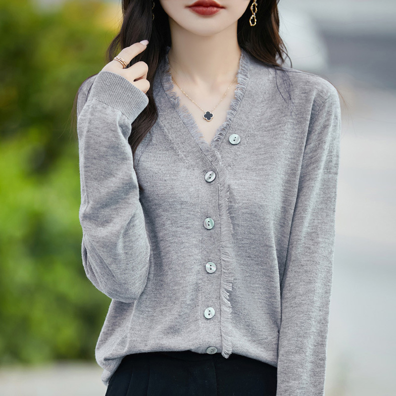 2025早春の新型vネックの純粋なウールのセーターの女性のゆったりした気質のセーターは薄いタイプのニットの底のシャツの上着を合わせます。