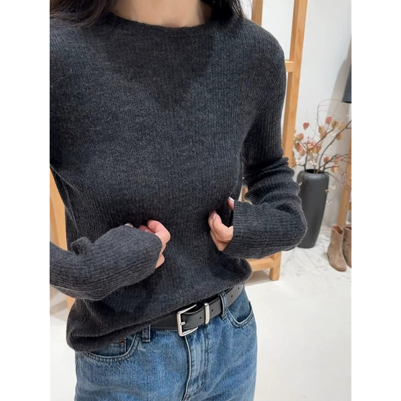 通勤に合わせて、丸首のカシミヤのニットの女性の秋冬の灰色の中にセーターの気質のウールの底のシャツを掛けます。