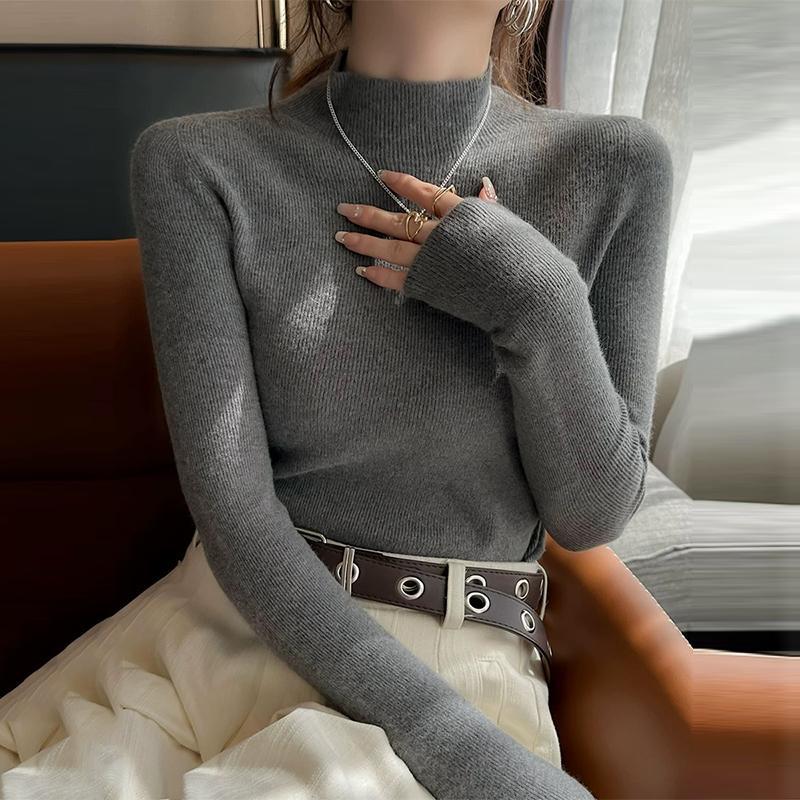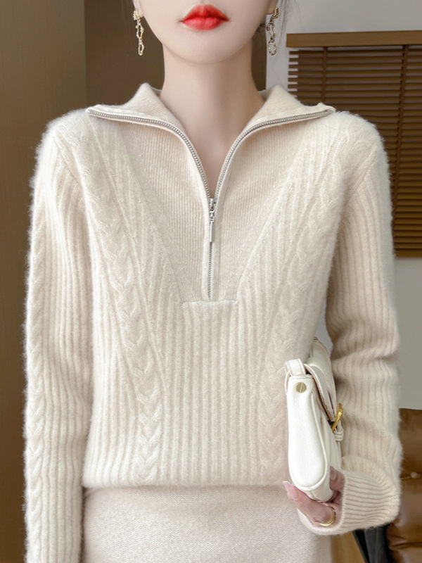 2024秋冬新作セーター女性ウールファスナー半高襟ニットシャツ