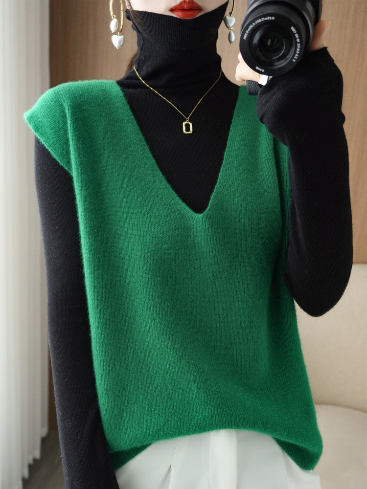 2025秋冬新作 レディース ゆったりVネック 無地 カジュアル 通勤 シンプル プルオーバー ノースリーブ ニットベスト