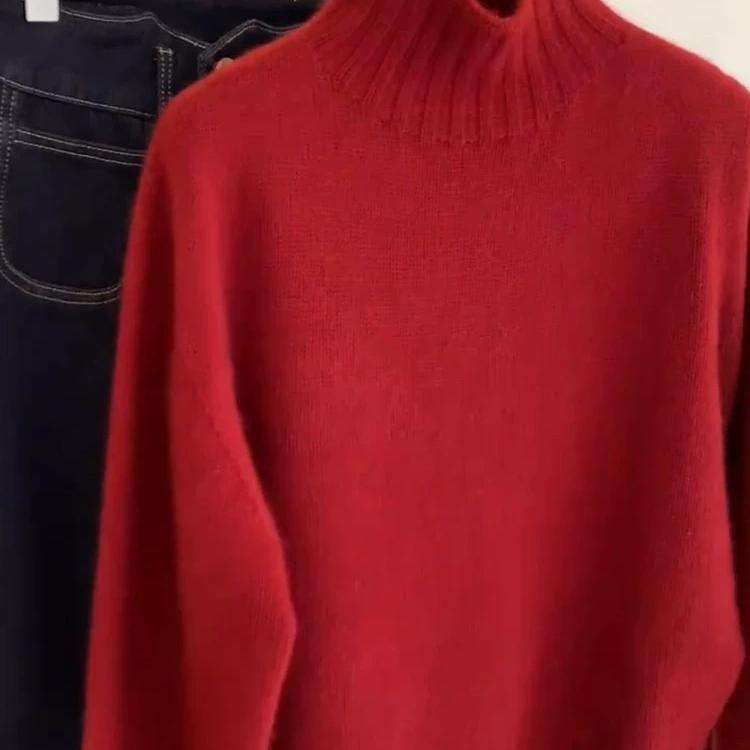 新年の赤いアンクラの赤い純粋なウールのセーターの半分の高襟のセーターのカシミヤの女性の秋冬は厚くて怠惰です。
