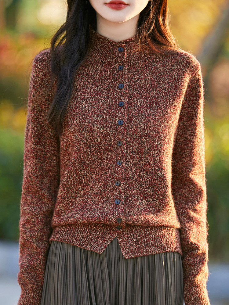 厚手の巻き縁ウール上着の花糸長袖コート半高襟カーディガンセーター秋ニット