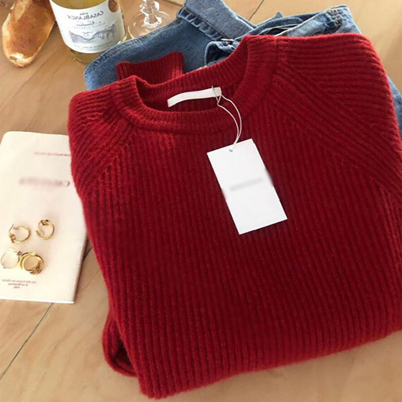 2023新型ウールのセーターの女性の丸首の赤いセーターはゆったりとしています。