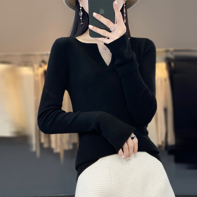 2023韓国版の厚手のセーターの女性の毛のvネックのゆったりしている怠惰なセーターの百合のニットの底のシャツの頭の長袖