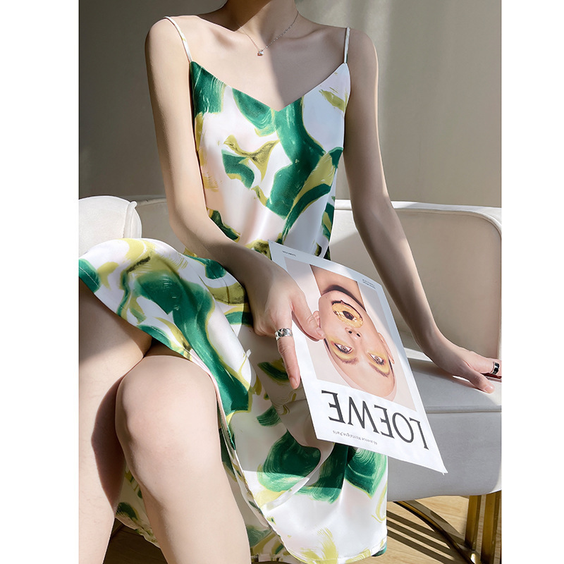 女性のセクシーなサテンドレス、模造シルクのロングサスペンダースーツ、痩身効果のある夏の新しいパジャマドレス