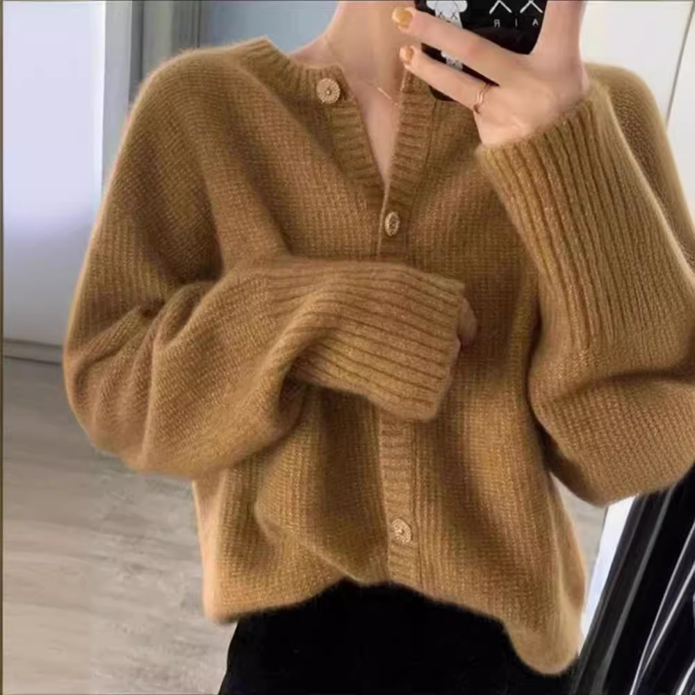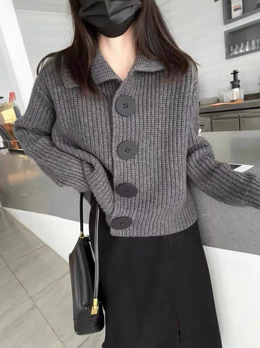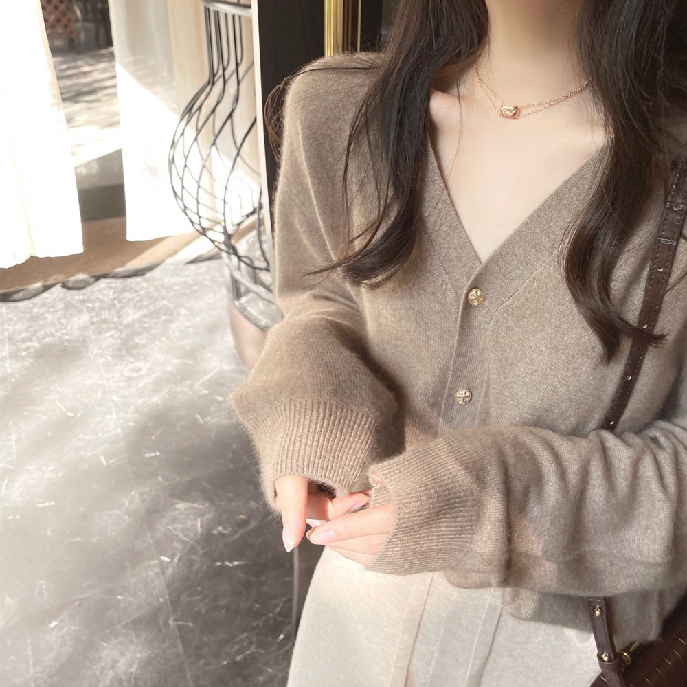 2024韓国版ウールのセーターの女性のベルベットのカーディガンの女性の春と秋のゆったりした怠惰な短いvネックのセーターの上着